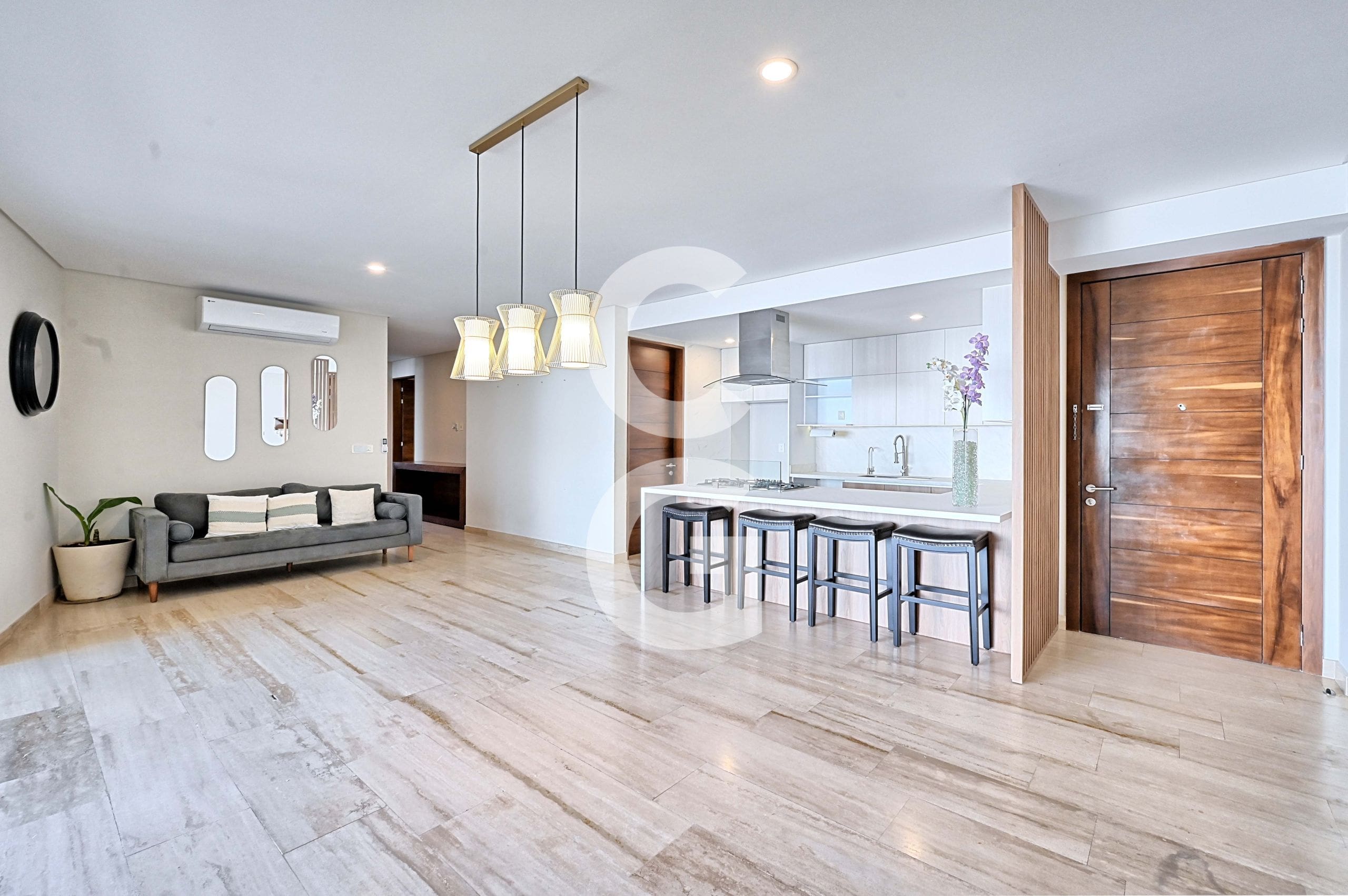 - Cortinas en sala comedor y persianas con blackout y de privacidad en recámaras